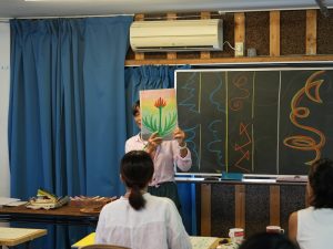 東京賢治シュタイナー学校でドイツベルリン教員養成ゼミナールのシュミットライトナー氏の美術の研修を美術講師として受けたのがこの学校との出会いです。それがご縁となってこの学校の高等部の美術教師のお誘いを受け、それ以来高等部の生徒たちと関わりが始まりました。