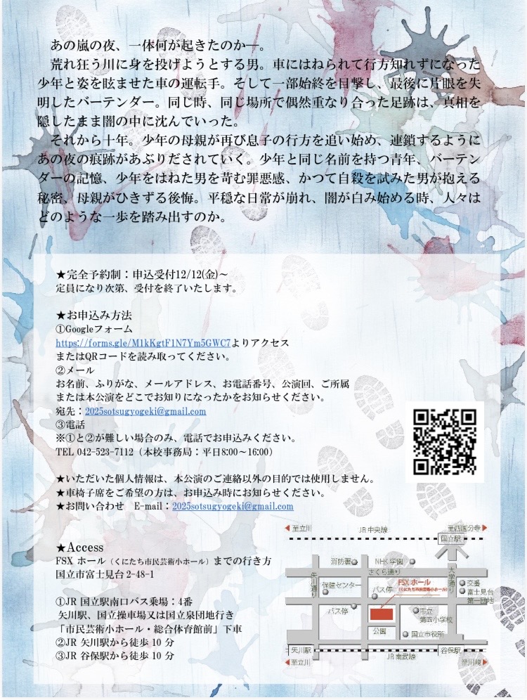 【申込受付中】1/31(土)12年⽣卒業演劇公演『痕跡』