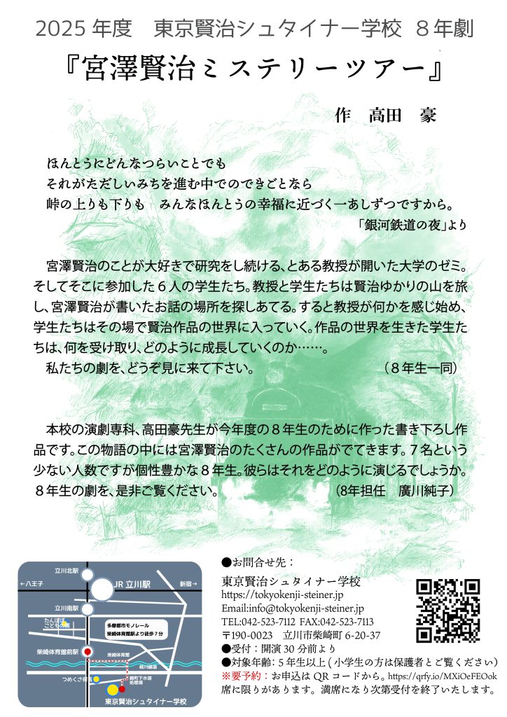 11/29(土)11/30(日) 8年生劇『宮澤賢治 ミステリーツアー』
