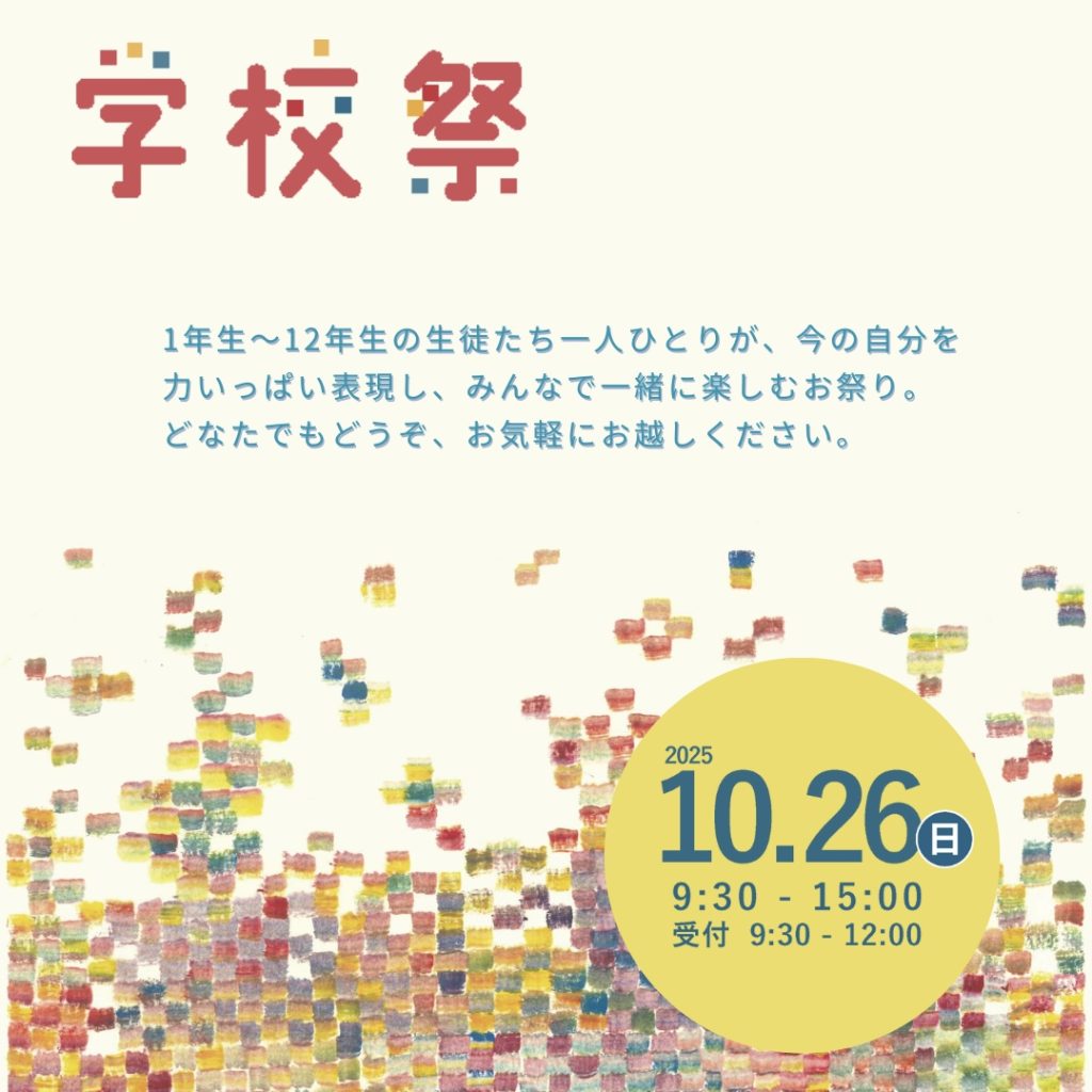 2025年10月26日(日)に学校祭を開催します。学校祭は、1年生~12年生(高校3年生)の生徒たち一人ひとりが、今の自分を力いっぱい表現し、みんなで一緒に楽しむお祭り。ど…