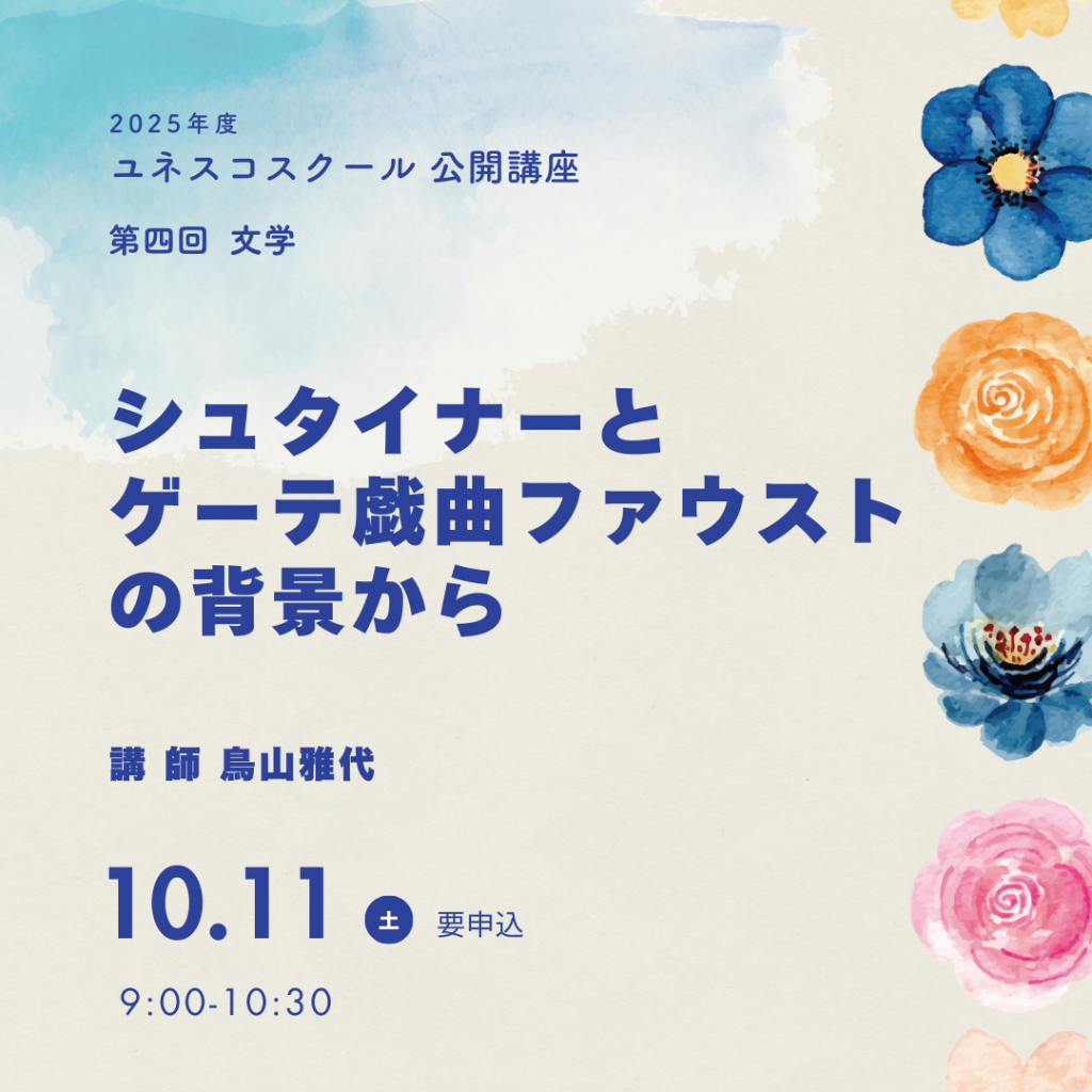 10/11(土) | ユネスコスクール公開講座「シュタイナーとゲーテ戯曲ファウストの背景から」 | |