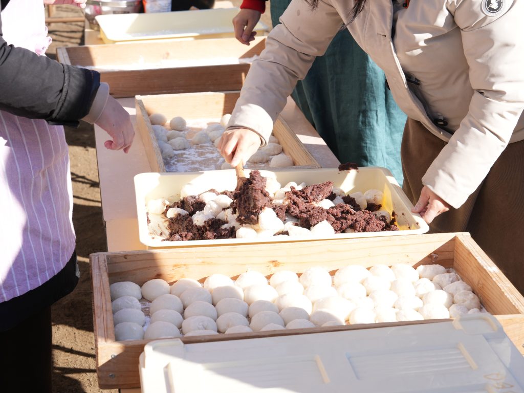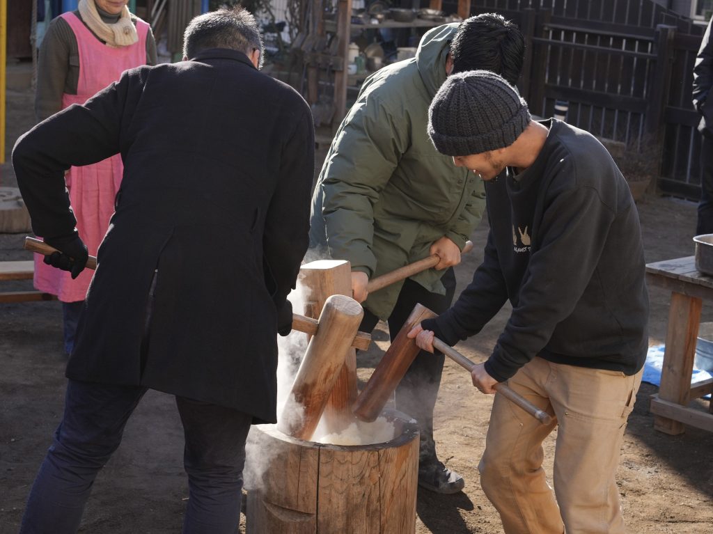 よく晴れた1月のある日。お餅つきと新年を楽しむ集まりが行われました。