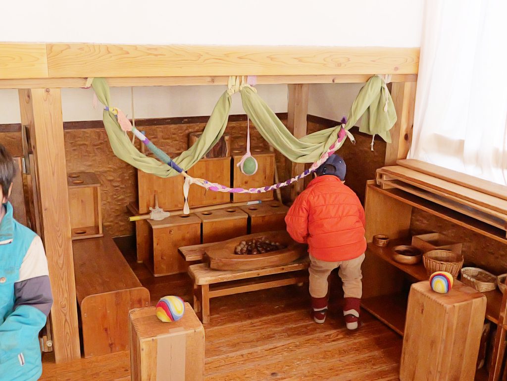 お部屋の中では、年長さんの感性溢れる手作り神社でお参り。出不精な私にとっては、今年初めての初詣となりました。あたたかな手作りおみくじを引き、お正月らしい遊びを次々に楽しみました。