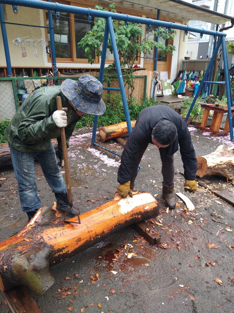 大きすぎて重すぎて、一時はどうなるかと思いましたが無事たんぽぽに丸太が届きました。