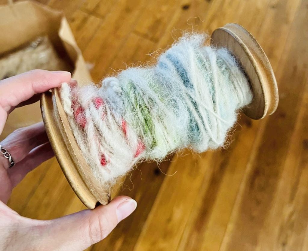 売っているような均一の太さではありませんが、それが何ともいい味で、とっても可愛らしい毛糸束に、とっても嬉しくなりました。