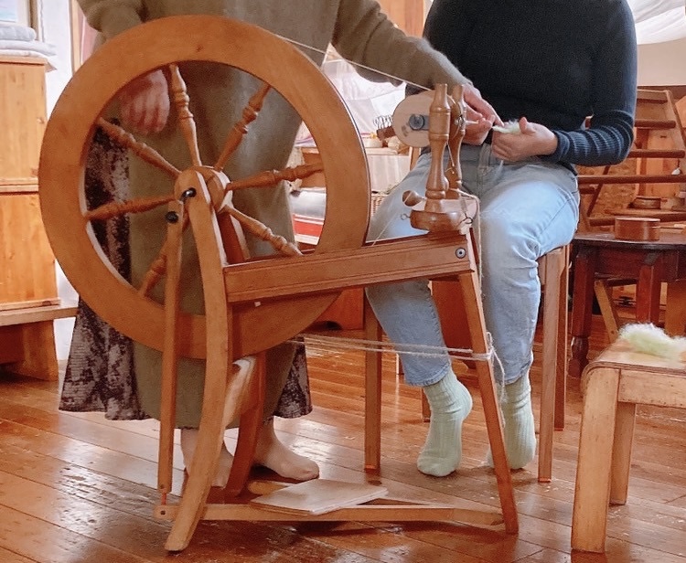 ひたすらに羊毛と糸車に向き合い、すぐに毛糸が切れては紡ぎ直し、調子良く糸が出てきたと思ったらまた切れて、紡いで、また切れてと、気が付いたら背中が痛くなっていました。